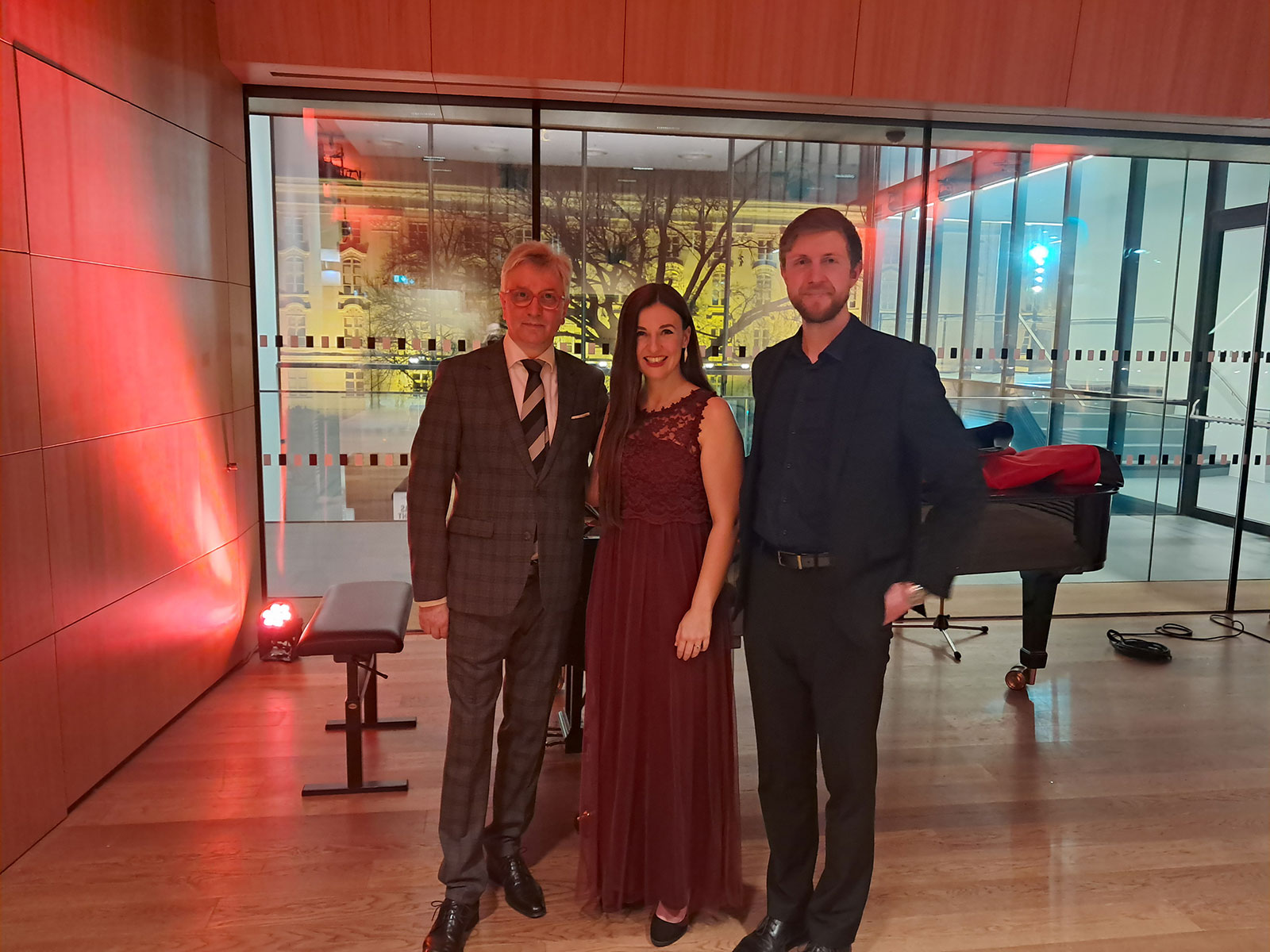 Im Anschluss an die Vorstellung gibt es einen Sektumtrunk mit der Förderpreisträgerin / dem Förderpreisträger im Pausenfoyer im 1. Rang.